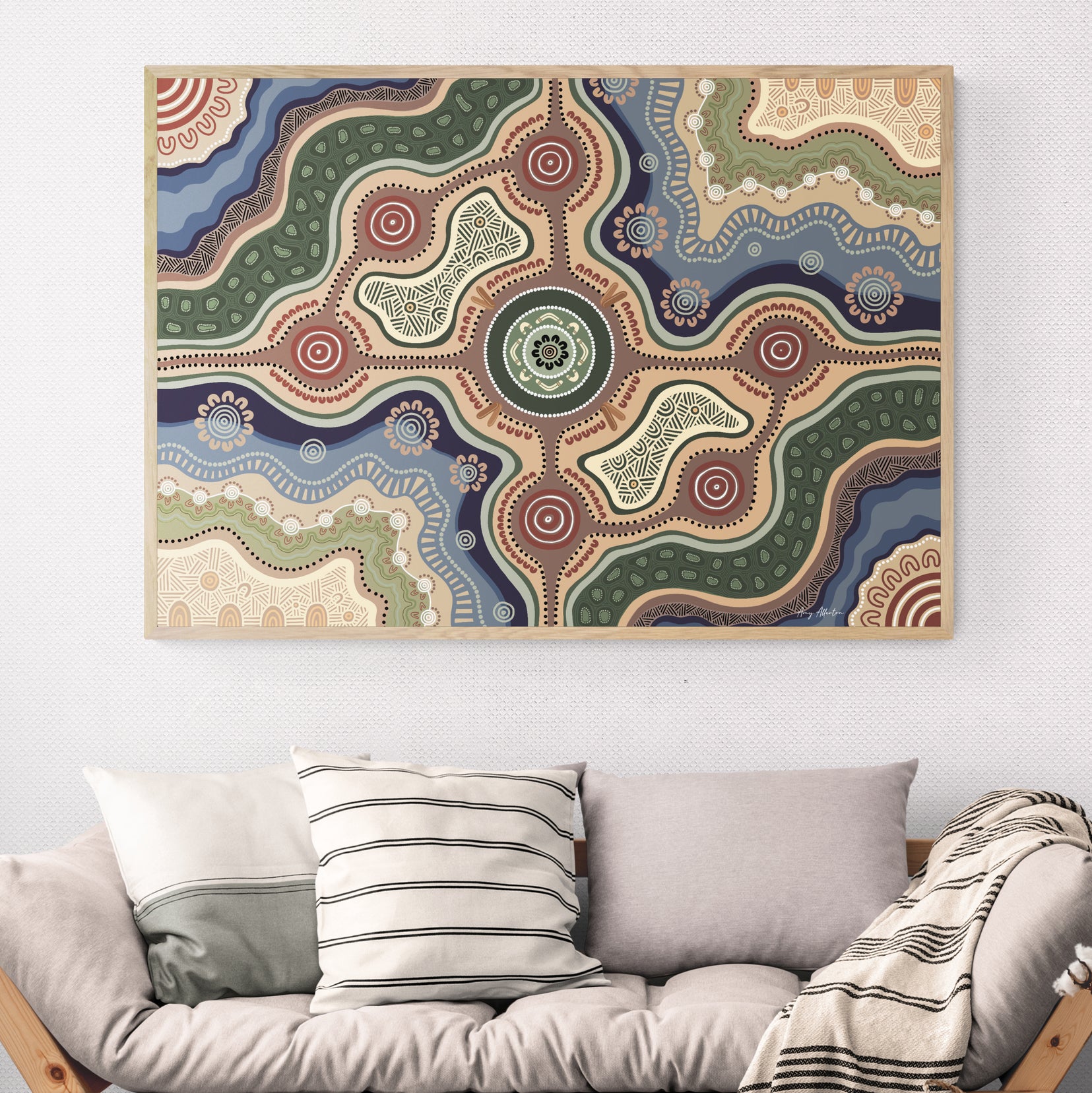 Shop all Art by Amy AllertonAmy Allerton is the owner and founder of Indigico Creative, a graphic designer, photographer and contemporary Aboriginal artist. Amy is a Gumbaynggirr and Bundjalung woman whose family’s traditional land is located in the Clarence Valley in a rural area called Cangai in NSW. Amy’s identity is strongly grounded in Gomeroi culture, history, dreaming, art and language having been born and raised in Tamworth, NSW, where she still lives with her husband and two children.